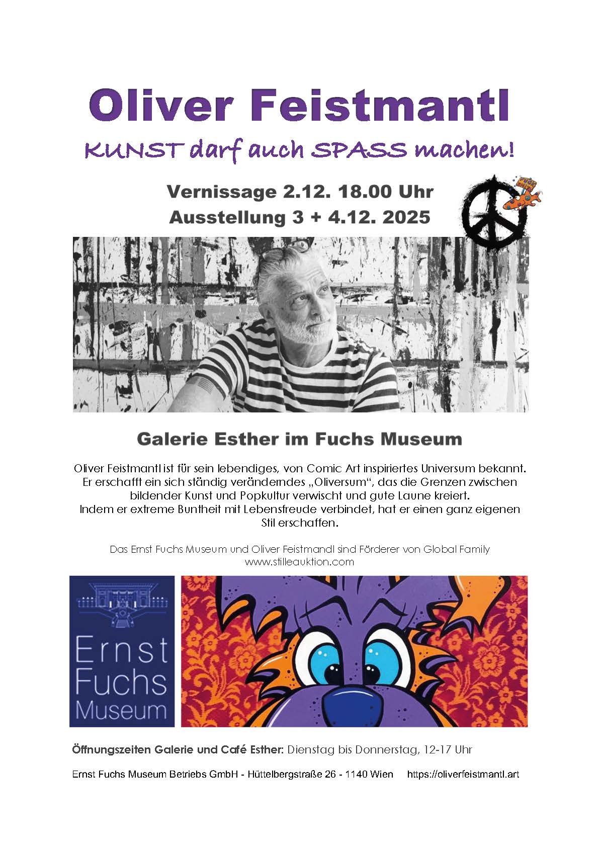 KUNST darf auch SPASS machen! Oliver Feistmantl wurde 1965 in Wien geboren und verbrachte seine Kindheit und Jugend in Tirol. Dort kam er mit Spraydosen in Kontakt, es entstanden die […]