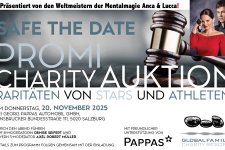 Österreichs größte Charity Auktion in Salzburg Salzburg. 66 Raritäten von Stars und Athleten. Am 20.11. bei Pappas und europaweit im Internet: Österreichs größte Charity-Auktion zugunsten Global Family, dem „Reisebüro der Menschlichkeit“, schafft hunderte...